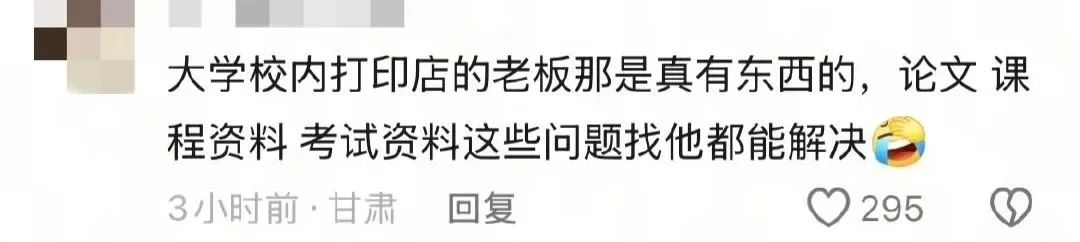 见识到打印店老板的一身绝活,也难怪会有人调侃,“打印店老板请假一天,在校毕业生仿佛经历了最难熬的一生”……